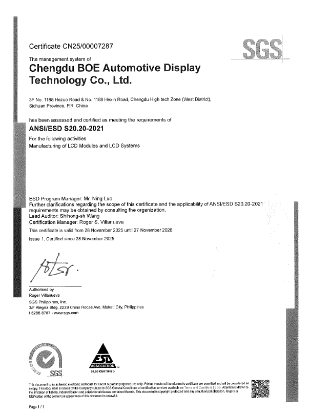 Home » Chengdu BOE Automotive Display Technology Co.,Ltd.