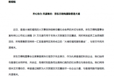 最新消息!齊心協力 共渡難關:京東方精電援助香港大埔